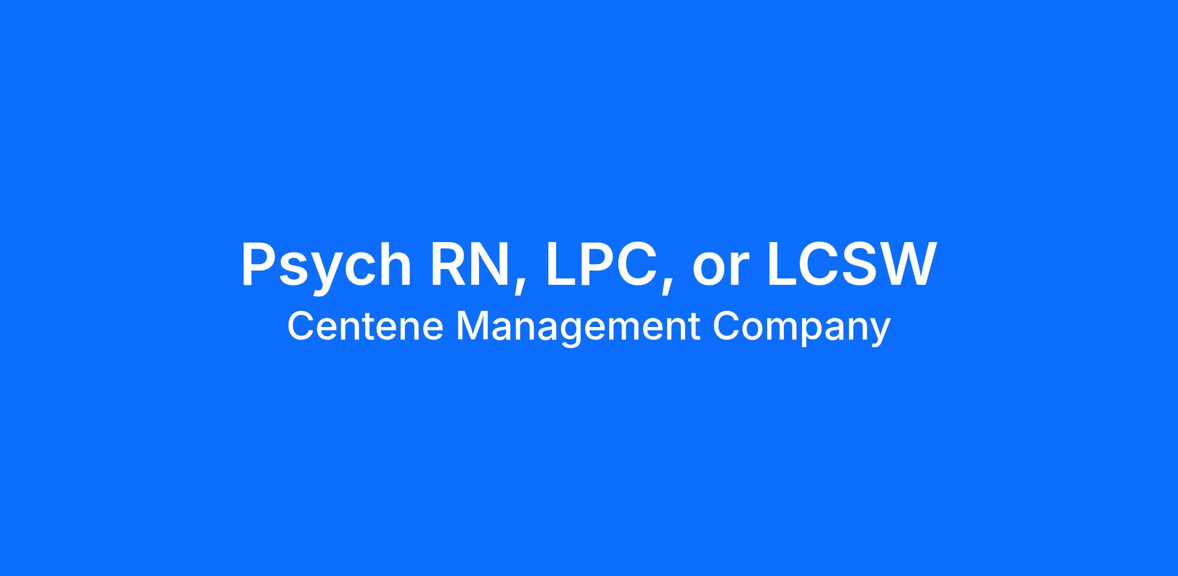 - Clinical LPC, LCSW, or Psych RN with 3+ years of psychological admissions/intakes, medication management for mental health/ physical health conditions, care coordination, and discharge planning with adult (ages:18 - 65)